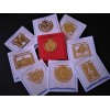Présentation sur une carte 2 volets bristol avec un texte généraliste ou culturel en rapport avec le modèle.